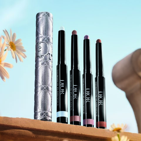 Nejsilnější je kolekce ve chvíli, kdy se z dekoru stane barevná disciplína. Tvář dostává bronzové a růžově opálené nuance v harmonii 031 Coral Bronze a 032 Pink Bronze, další vrstvy světla přidávají odstíny 003 Sun-Kissed a 630 Sunburst. Oči se pohybují mezi dvěma póly: 162 Summer Azur vychází z letní oblohy, pastelové modři, azuru, žlutého zlata a měkkého korálu, zatímco 670 Sunset Bronze skládá večerní paletu z růžové, cihlové, zlaté a saténově hnědé. Do této osy pak vstupuje Diorshow Flash Stick, tentokrát v osmi odstínech od holografického 024 Celestial Star po hluboký 280 Lucky Clover nebo teplý 481 Brown Poncho. Kolekce se tak pohybuje mezi dvěma světelnými stavy jihu Francie: modrým jasem dne a nahnědlým, korálově zahuštěným soumrakem.