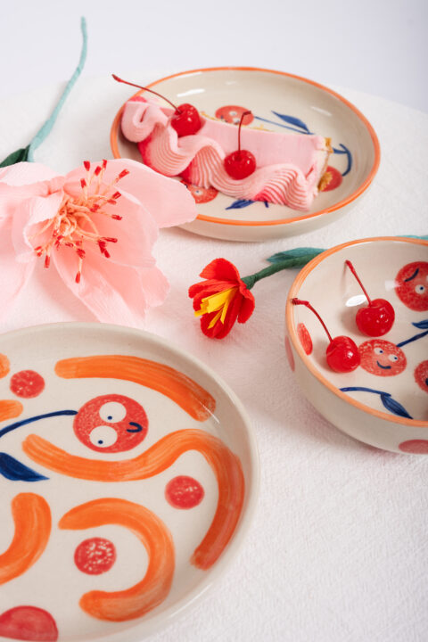 Jubilejní edice proto sází na oslavu, ale v duchu, který k mini sedí: hravě, výtvarně a s důrazem na detail. Vizuální podobu připravila ilustrátorka a výtvarnice Tereza Šedivá, navazující na dlouhodobou identitu festivalu od grafické designérky Zuzany Lednické. Typické červené puntíky se tentokrát přelévají do jarně-letní nálady a objevují se i na limitované kolekci dětského nádobí od české značky A’petit. Stejná značka vytvořila také ceny mini v podobě ručně malovaných keramických pohárů pro tři nejpozoruhodnější vystavovatele. I v tom je dobře vidět, jak festival pracuje: grafika, produkt a prostor tu netvoří oddělené vrstvy, ale jeden celek.