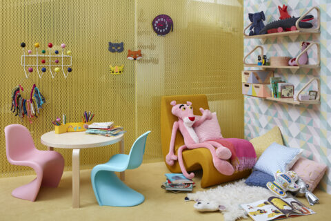 Interiérovou a nábytkovou část zastoupí například Mimimo, Vigvam Design, Lavly, Fold&Play a Vetos. Firma Vitra pak při příležitosti stého výročí Vernera Pantona představí jeho ikonické plastové židle ve standardní i juniorské verzi. Takový moment je pro mini typický: vedle mladých značek a lokálních projektů se zde objevují i designové klasiky, které vstupují do dialogu s dětským měřítkem a rodinným prostředím. Podobně funguje i knižní sekce, kde se vedle nového nakladatelství Valibook objeví projekt Jazykové krabice HafFUN nebo Petra Nesvačilová se svou knihou Astrid a eja a mikinou s ilustracemi Michala Bačáka na stánku Wolfkids.